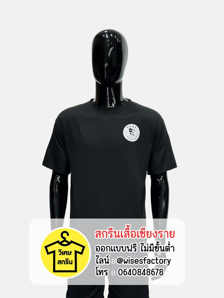 ในครั้งนี้ ลูกค้าได้นำเสื้อยืดสีดำมาเอง โดยเป็นเสื้อผสม Cotton และ Polyester ซึ่งสำหรับทีมงานสกรีนจะถือว่าเป็นเสื้อที่สกรีนค่อนข้างยาก แต่ด้วยประสบการณ์ของเราสามารถทำได้ งานลักษณะนี้จะต้องลงสี 2-3 รอบ เพื่อให้ได้สีที่แน่น คมชัด และติดทนทานบนเนื้อผ้าแบบผสมนี้
